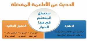 يتم عرض فيديو لحوار ( الحديث عن الأطعمة المفضلة باللغة العربية )